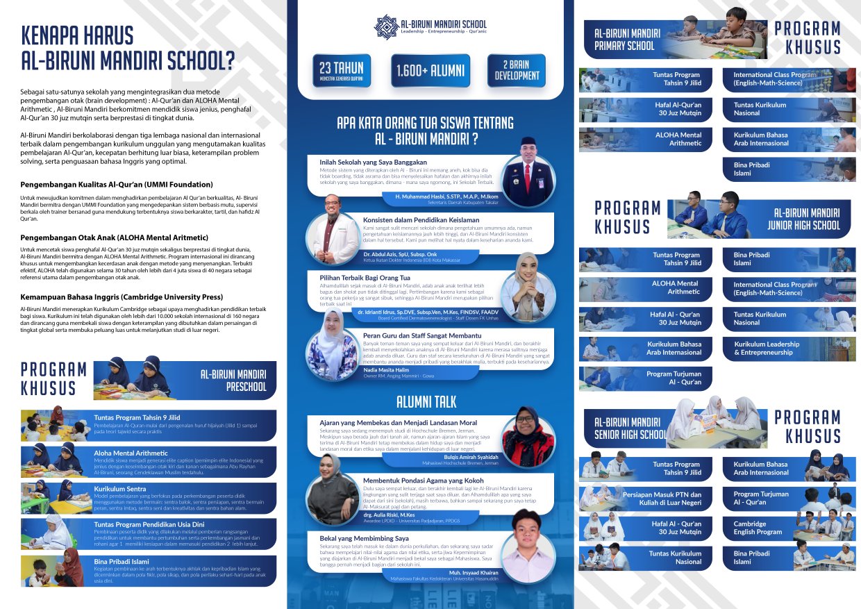 Sekolah Al-Biruni Mandiri kembali membuka Pendaftaran untuk Tahun Ajaran di depan.